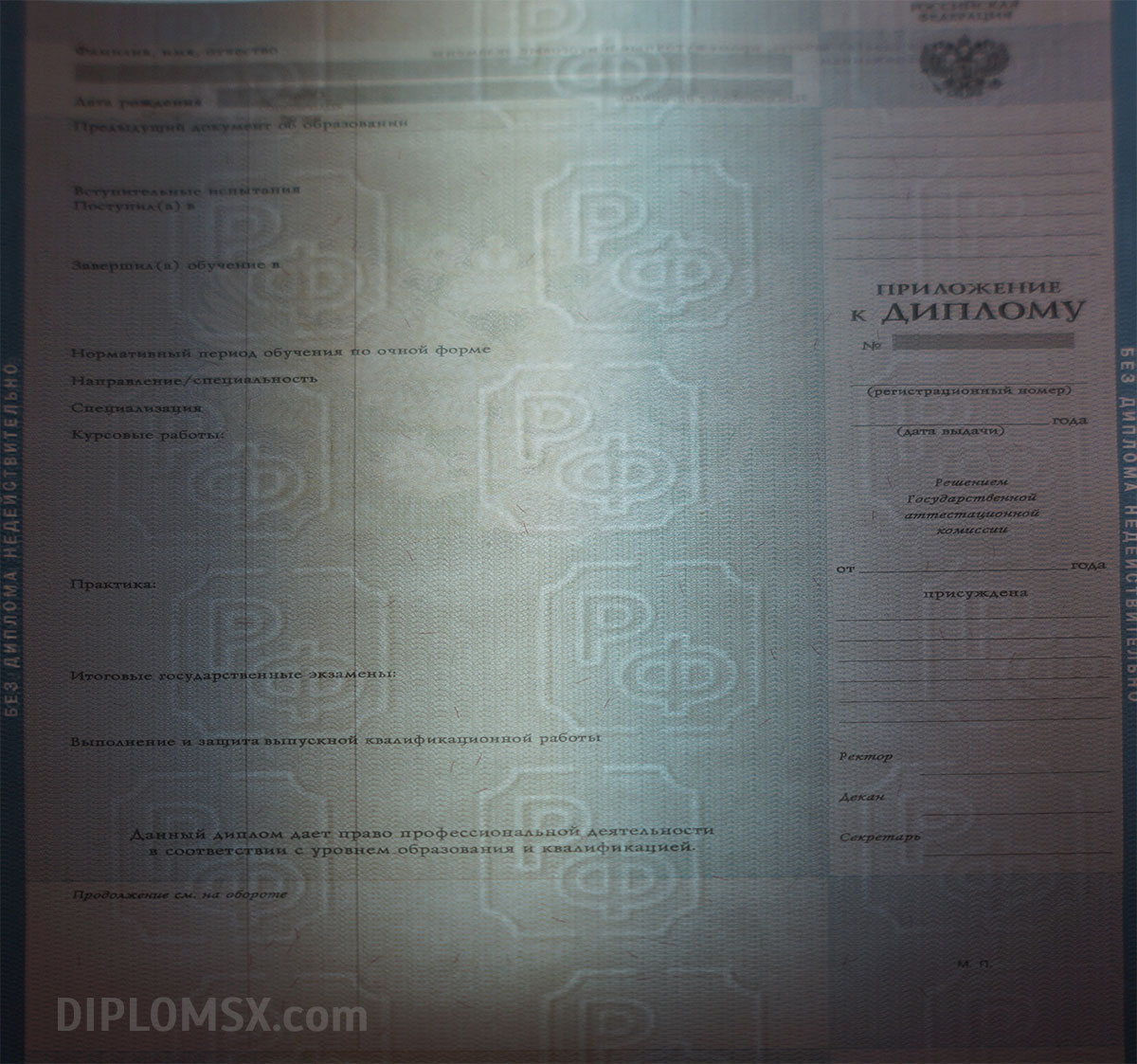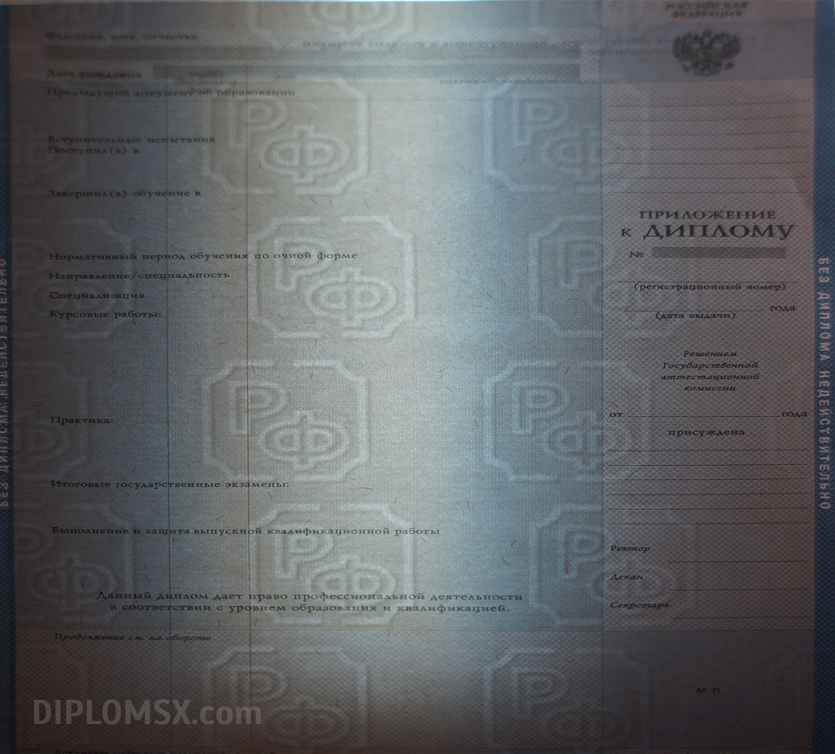 Помимо доступности наших услуг, мы предлагаем изготовление образовательных бумаг любого Вуза России на оригинальном бланке ГОЗНАК, с соблюдением всех степеней защиты: с наличием водяных знаков, голограмм и других признаков подлинности, а также печатей, подписей и положенной информации.